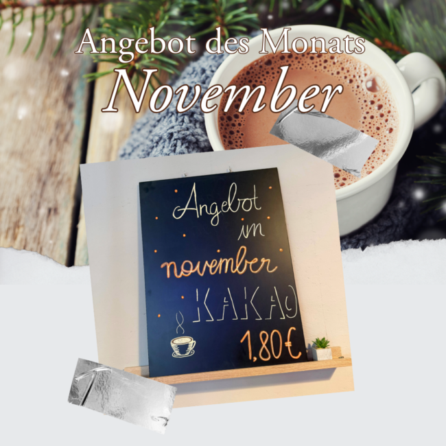 Im November gibt es bei uns im FiTROPOLIS den Kakao zum Angebotspreis von 1,80 €.