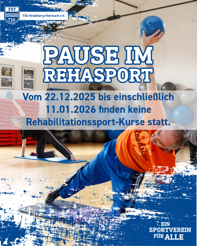 Die Rehabilitationssport-Kurse legen eine kleine Winterpause ein. Vom 22.12.2025 bis einschließlich 11.01.2026 finden keine Kurse statt. Ab dem 12. Januar finden die Reha-Kurse dann wieder